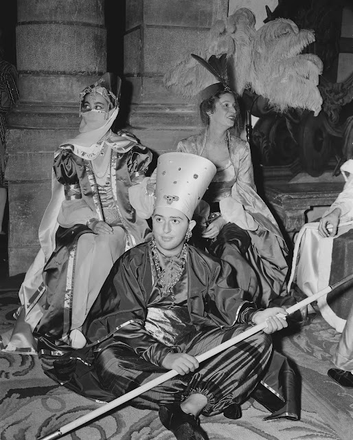 vedettes : Orson Welles, la comtesse Mocenigo, l'Aga Khan III, le marquis de Cuevas, Elsa Maxwell, Maria Callas, Jacqueline de Ribes, les Polignac, les Rosthchild, Paul Morand, Leonor Fini... Mais il demeure le plus grand évènement mondain du XXe siècle, le parangon de la fête, sans vulgarité, toute de grâce et d'esthétique, de beauté et de joie, comme on imagine que furent les fêtes de Versailles, de Vienne ou de Petersbourg, jusqu'à la barbarie... ![]() |